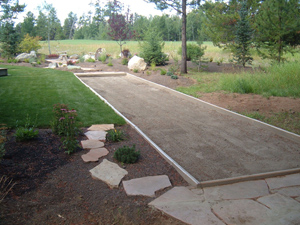 | Dry set flagstone pathway to firepit flagstone patio thru native perennial garden |