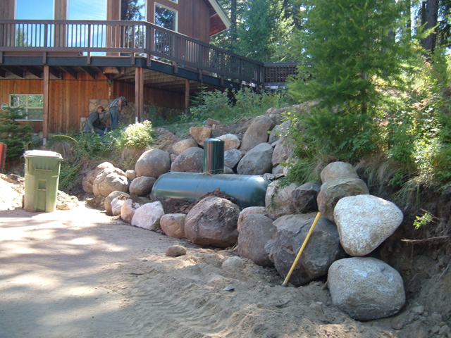 | Landscape Infastrcuture - LPG Tank burial with Boulder Retaining Wall |