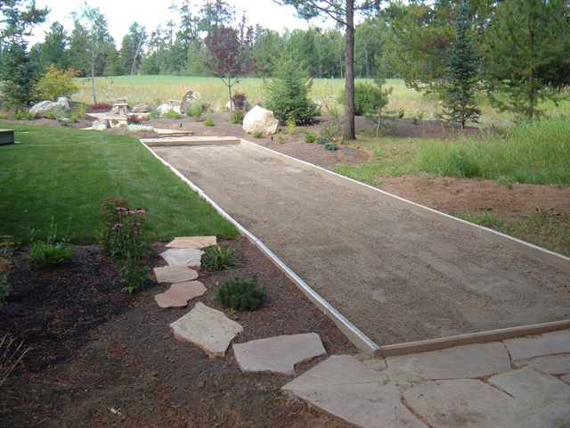 | Bocce ball court laid between sod grass and native perennial garden |
